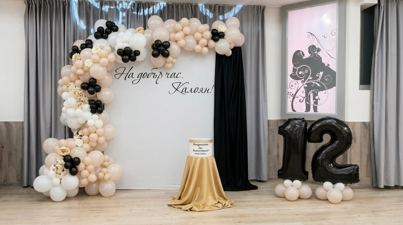 🎓 Glanzvoller Abschluss: Wir verwandeln Schulaulen oder Eventhallen in glamouröse Ballräume, die den Stolz und die Freude über diesen besonderen Meilenstein sichtbar machen. Unsere großflächigen Fotowände mit organischen Ballon-Arrangements und glitzernden Akzenten sind der Mittelpunkt jeder Feier.